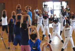 令和5年7月15日(土)佐野市国際クリケット場にて、本会会員の小学生を対象にした、体力向上の講座を開催しました。朝方までの雨の影響で、クリケット場の芝生上での運動は出来なかったものの、体育館(通常は耐震化工事が済んでいないので利用禁止)で行いました。